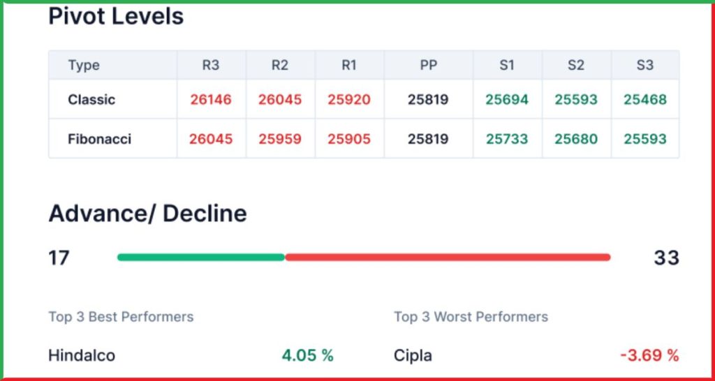 - Daily Chart पर Lower High–Lower Low Formation दिखा, जो Consolidation का संकेत है।