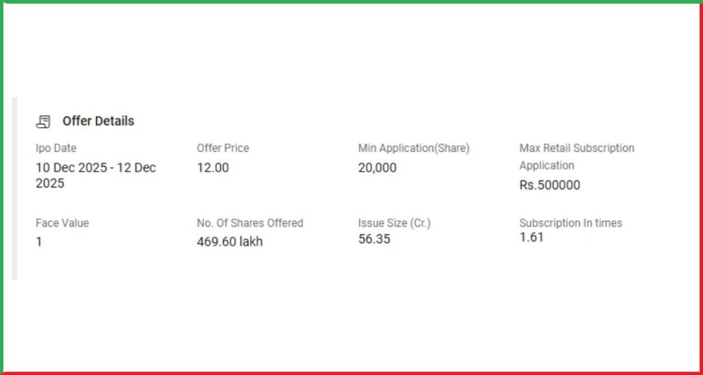 IPO के तहत ₹1 Face Value वाले 4,69,60,000 Fresh Shares जारी किए गए थे।